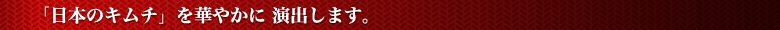 和のキムチ「優」は、キムチとしては今までにない、高級和紙につつみ、真塗り一重箱にお入れしてお届けさせていただきます。お世話になった方への贈り物や、お祝いのお品物として、きっとご満足いただけるものと自負しております。贈った方も、贈られた方も、思わず笑みがこぼれる、そんな美味しいひと時を 心をこめてお届けいたします。 |